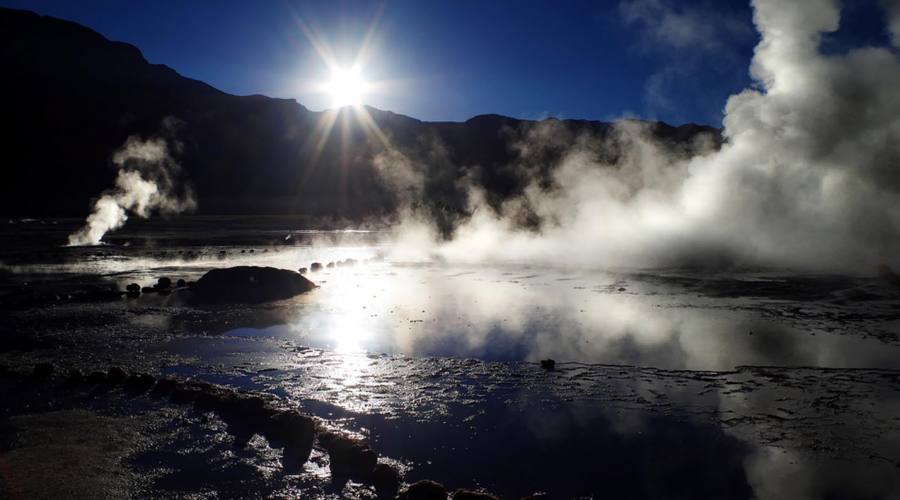 E’ particolarmente suggestivo osservare all’alba i potenti spruzzi di vapore che fuoriescono dai diversi soffioni e dalle pozze fumanti. Successivamente, sulla via del ritorno, raggiungerete le sorgenti termali di Puritama, dove potrete godere di un po’ di riposo e di relax, immersi nelle piscine termali naturali.